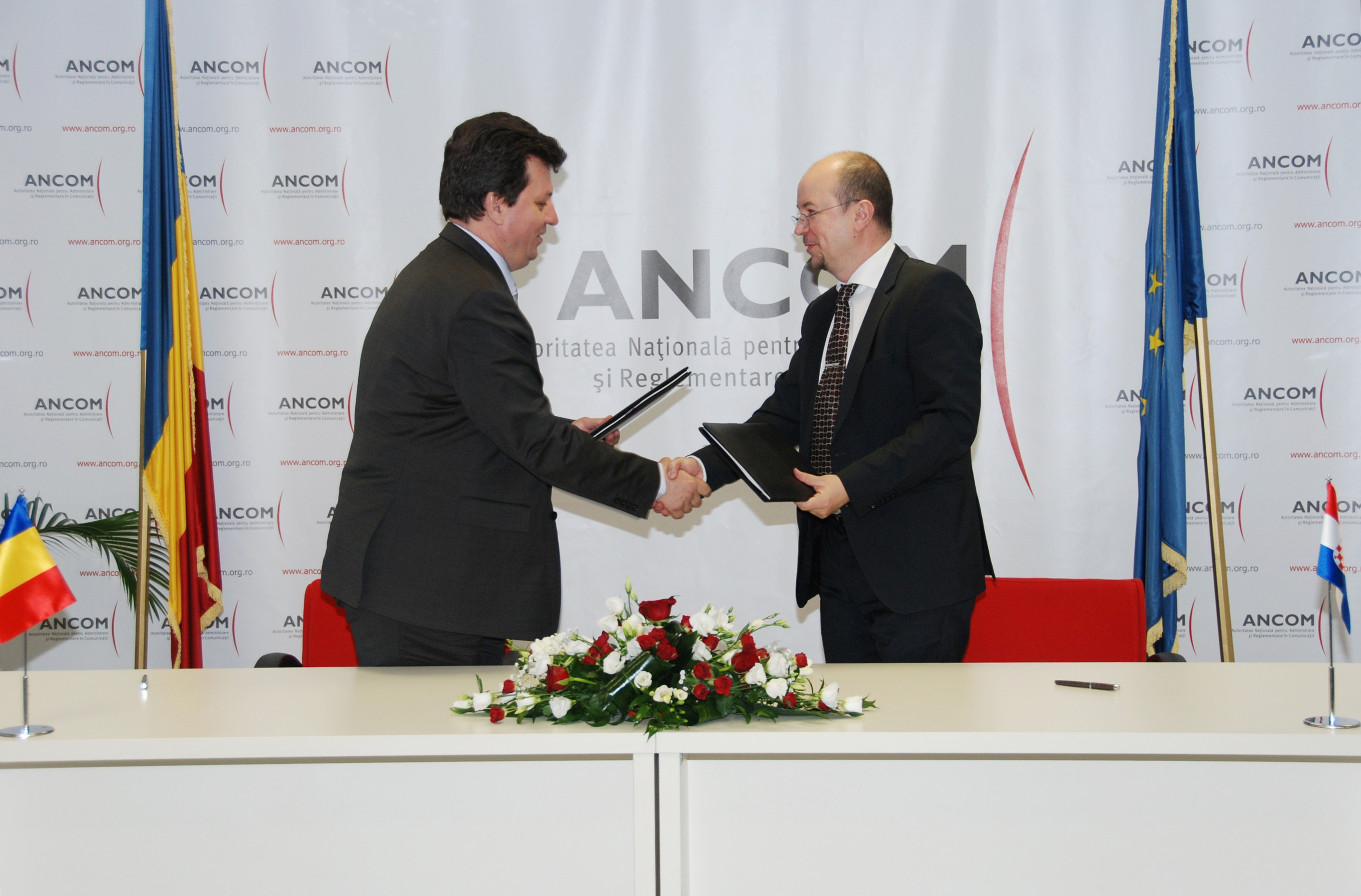 Astăzi, 18 aprilie 2012, preşedintele Autorităţii Naţionale pentru Administrare şi Reglementare în Comunicaţii (ANCOM), Cătălin Marinescu, a semnat, la Bucureşti, un Memorandum de Înţelegere cu directorul Agenţiei de Poştă şi Comunicaţii Electronice din Croaţia (HAKOM), Dražen Lučić.