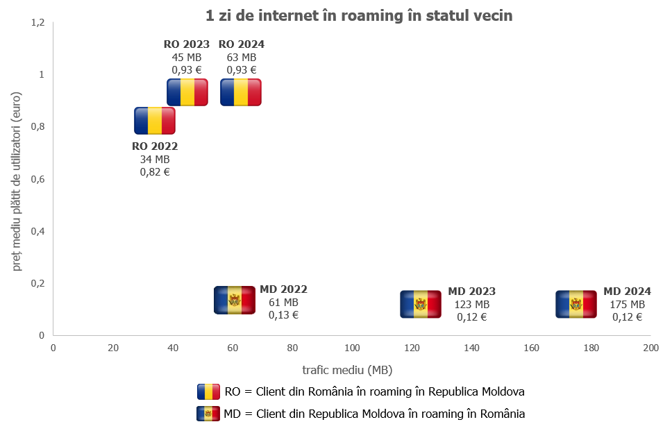Creșterea roamingului bilateral în 2024 are la bază toate sursele de creștere consacrate în anii precedenți: consum mai intensiv de servicii, mai mulți utilizatori în roaming și durată mai lungă a roamingului. Costul mediu al unei zile de internet în roaming bilateral a rămas același ca în 2023, deși traficul a crescut semnificativ.